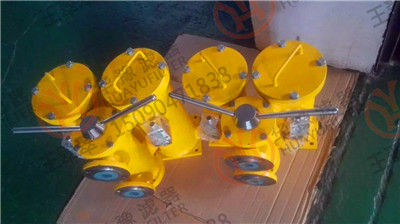 該雙筒過濾器由兩臺過濾器和一臺二位六通換向閥組成,并配有壓差發訊器。工作中通過換向閥的切換,可在不停機的工況下更換或清洗堵塞的濾芯,適用于要求連續工作的潤滑系統