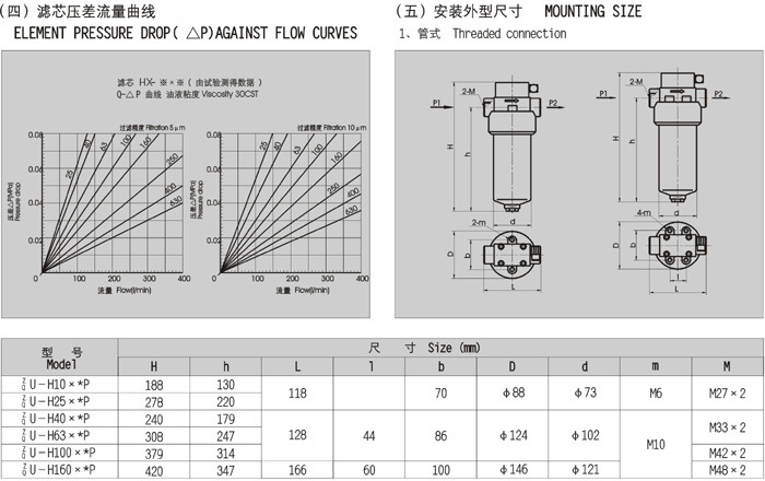 該過濾器濾芯采用新型化纖過濾材質,具有過濾精度高、通油能力大、原始壓力損失小、納污量大等優點,其過濾精度以絕對過濾精度標定,過濾比β3、5、10、20>100,過濾效率n≥99%,符合ISO標準。